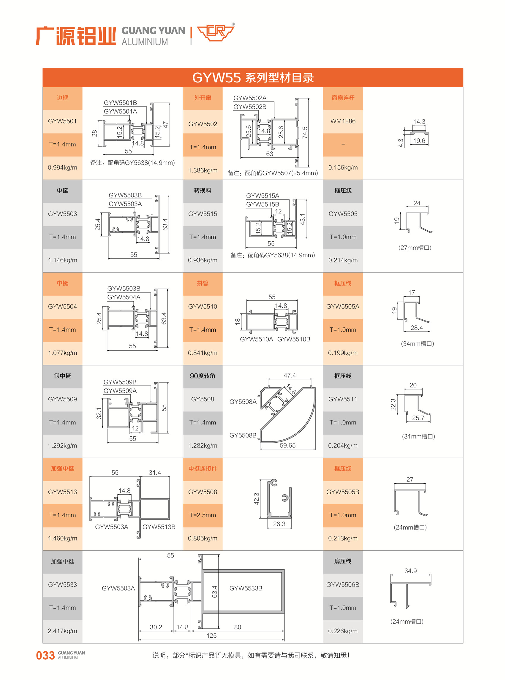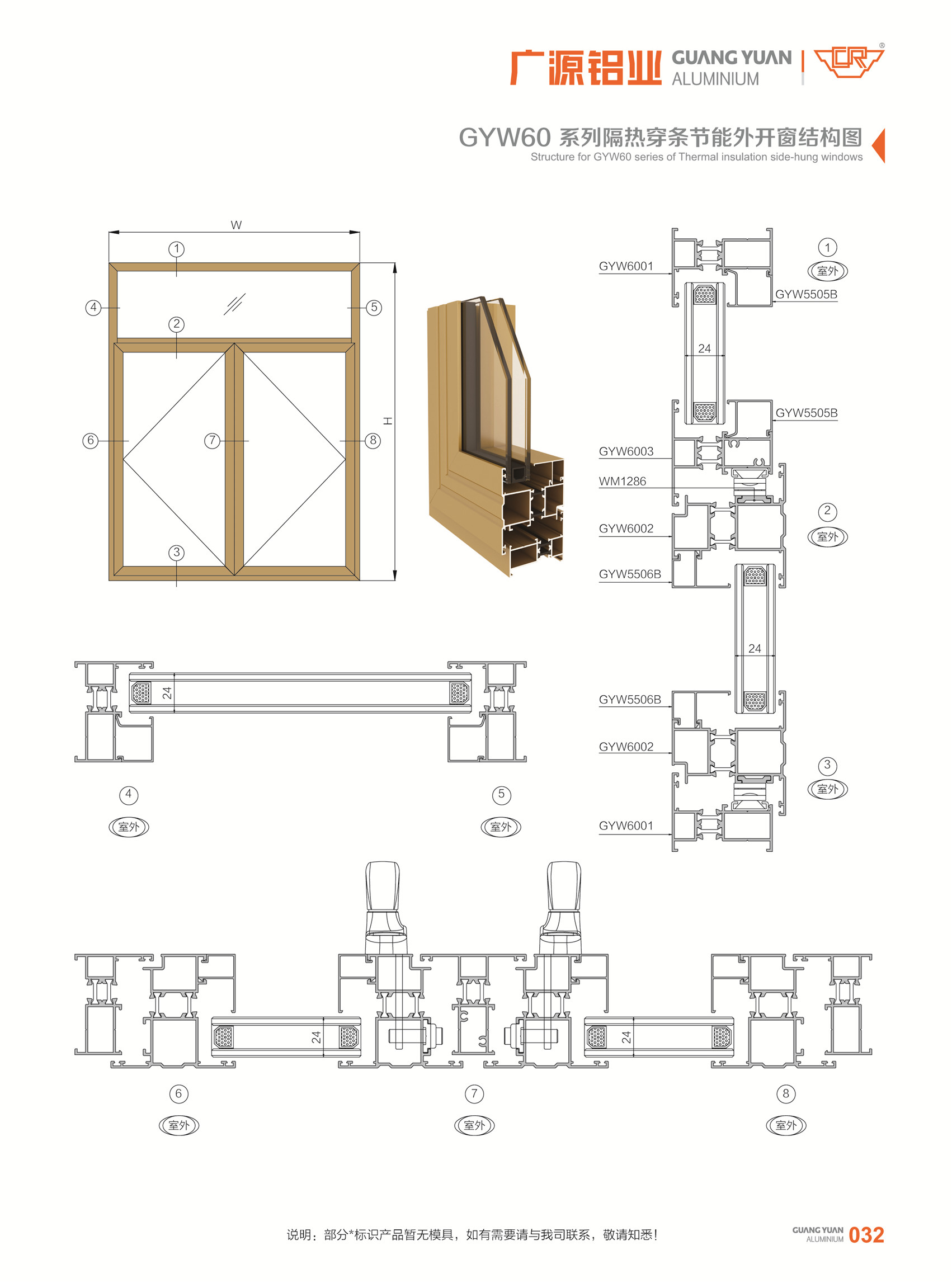 穿条平开窗-GYW55,GYW60系列(边框55,60mm)