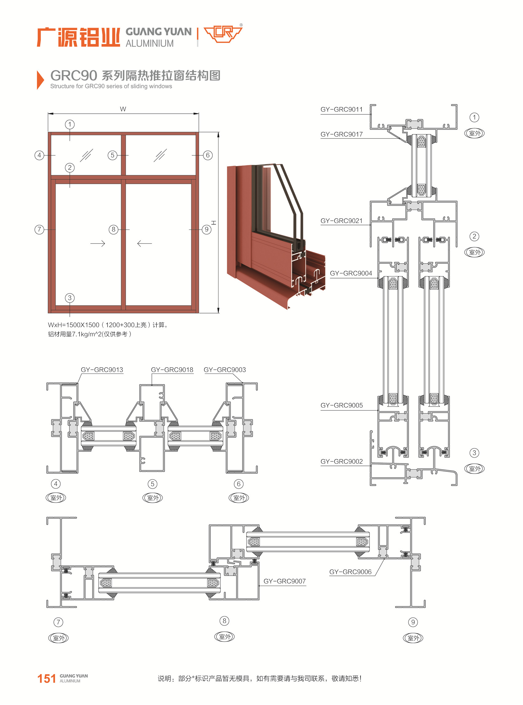 注胶推拉窗-GRC90系列(边框90mm)