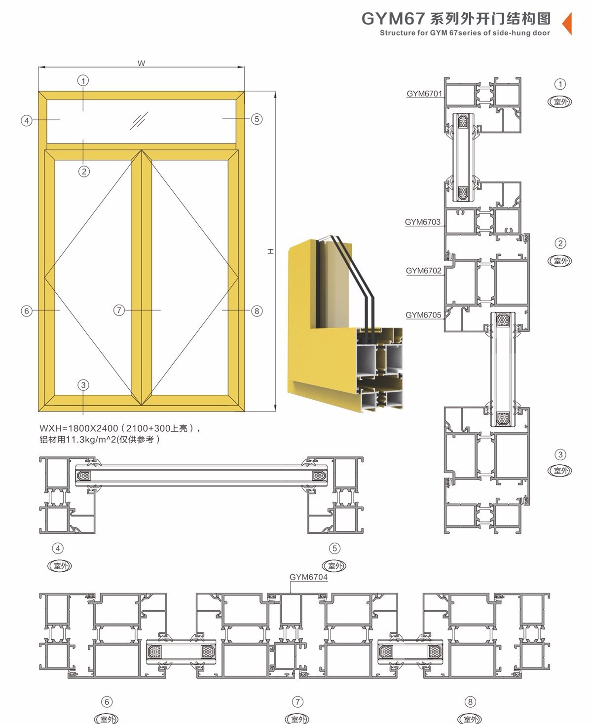 GYM67系列外开门结构图