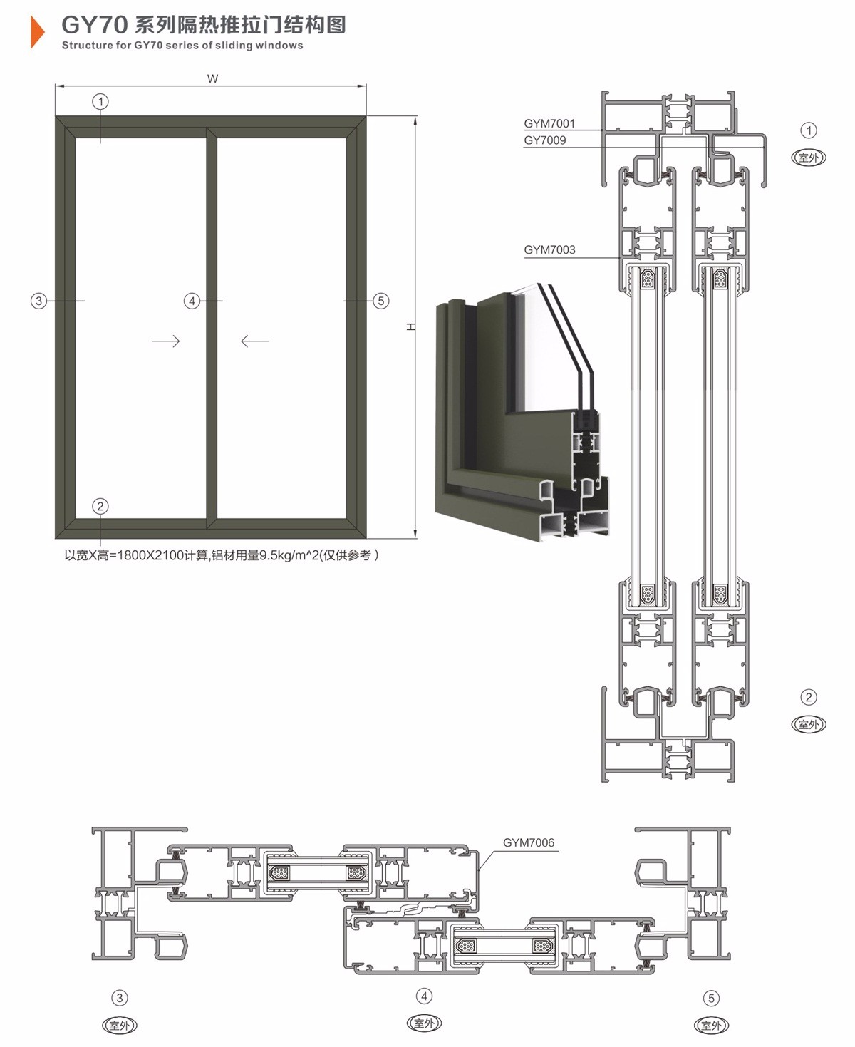 GY70系列隔热推拉门结构图
