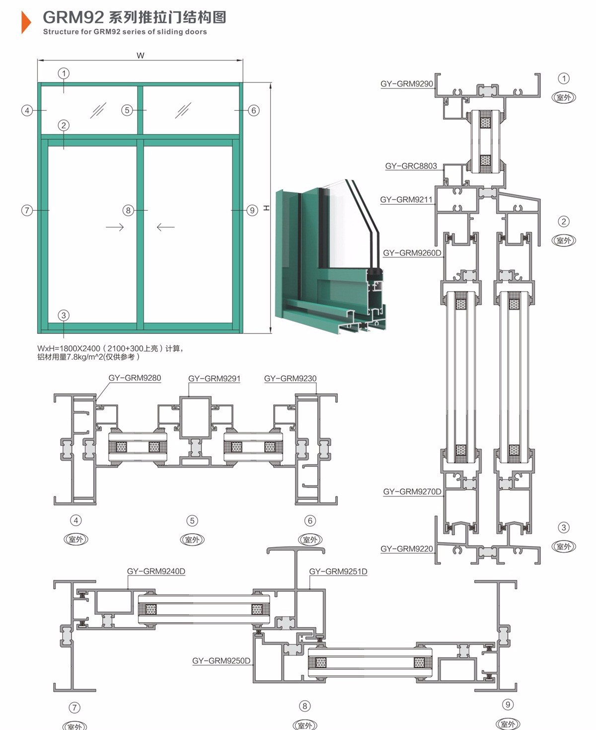 GRM92系列推拉门结构图